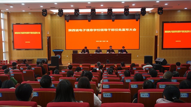 11月11日下午,陕西省电子信息学校领导干部任免宣布大会在我校综合实训楼五楼报告厅召开。陕西省教育厅副厅长高岭,省委教育工委、省教育厅人事处处长申雪峰出席会议,学校全体教职工参会。会议由申雪峰主持。