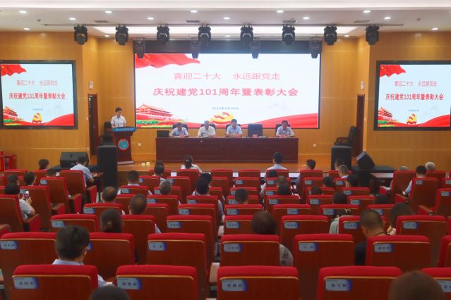 6月28日,“喜迎二十大 永远跟党走”庆祝建党101周年暨表彰大会在我校综合实训楼五楼报告厅举行,学校领导班子成员出席,全体教职工和部分离退休党员参加。