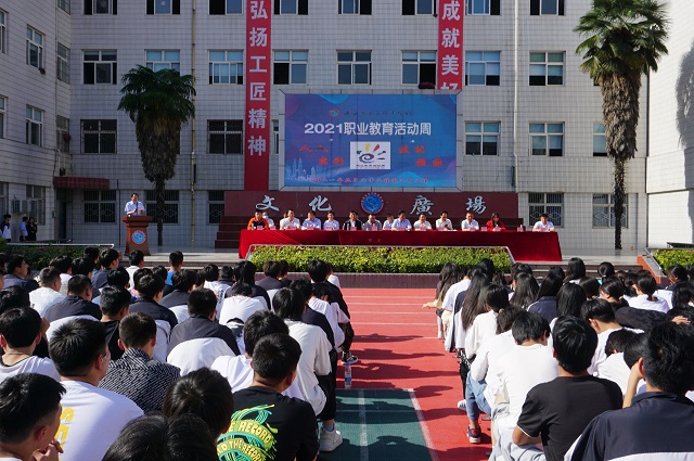 魏萍副书记在讲话中说,一年来,我校师生秉承工匠精神,取得了一项又一项优异成绩。作为陕西中职学校的排头兵,我们要坚持立德树人,弘扬工匠精神,提高实践教学水平和技术服务能力;要崇尚劳动,让学生在劳动中体现价值、展现风采、感受快乐;要敢于创新,提升创新思维、创造能力、实践能力,为学生的成长成才搭建更广阔的平台,为国家社会经济发展做出贡献。她对学生提出三点希望,一是坚定理想信念,树立为国奉献、为民服务的远大志向;二是刻苦学习,掌握过硬的知识和本领,积淀职业素养,树立敬业守信、精益求精的职业精神;三是树立“不唯学历凭能力”“行行出状元”的自信,用过硬的本领、勤劳的双手和扎实的行动,创造不凡的未来。希望全校师生以本次职教活动周为契机,解放思想、齐心协力、锐意进取,努力推动我校各项工作再上新台阶。
