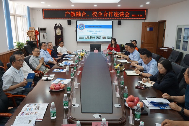 ――5月24日,产教融合校企合作座谈会在我校召开。陕西邦达环保工程有限公司、延安海创环保科技有限责任公司、乐清海螺水泥有限责任公司、宝鸡海螺型材有限责任公司、京东西北分公司、上海三菱电梯陕西分公司、华天科技(西安)有限公司、西安大明宫装饰有限责任公司、西安吉利汽车有限公司、中陕核218大队等企业领导应邀出席。校企双方围绕贯彻落实全国职业教育大会精神、推进校企深度融合和协同发展、为国家培养高素质技能人才等话题进行座谈。