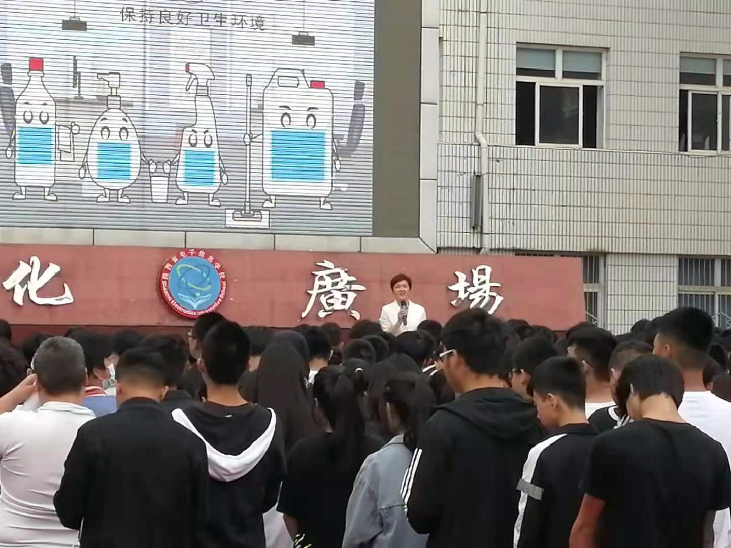 6月18日上午9时55分,急促的哨声响起,同学们立即起身,快速有序地奔向走廊,根据预定的路线,有序撤离到指定的安全地点。应急疏散演练在全体师生的配合下圆满结束。