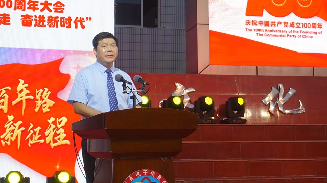 6月23日,全校师生欢聚一堂,在文化广场举行表彰大会暨“永远跟党走·奋进新时代”文艺汇演,庆祝中国共产党建党100周年,向党献上陕电师生诚挚的祝福。我校领导班子出席,校长顾学福讲话,6名在党50年的党员代表参加活动。