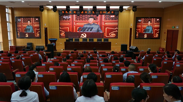 7月1日上午,我校组织全体教职工观看庆祝中国共产党成立 100 周年大会直播,共同庆祝党的百年华诞,认真聆听习近平总书记发表的重要讲话。下午,各党支部召开党史学习教育专题组织生活会,并热议习近平总书记在庆祝中国共产党成立 100 周年大会上的重要讲话。