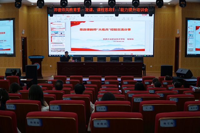 9月15日下午,我校举行师德师风教育暨思政课、课程思政教学能力提升培训会,特邀2020年陕西省“思政大练兵”教学标兵、陕西工业职业技术学院形势政策教研室主任程军栋副教授为全体教职工作专题讲座,我校副校长李孝勇主持培训会,校长助理杨永宏讲话。