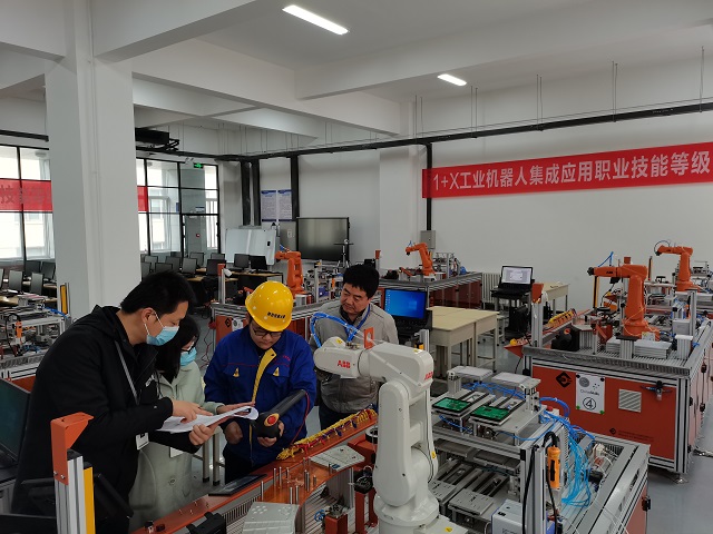 本次“1+X”数控车铣加工职业技能等级考试,由武汉华中数控股份有限公司发证,考试全程实时监控同步到第三方培训评价组织,保证考试规范有序进行。“1+X”工业机器人集成应用职业技能等级证书考试由北京华航唯实机器人科技股份有限公司提供考务协助,通过理论考核、实际操作考核,全面考察学生对工业机器人系统集成知识、技能综合运用能力和规范安全操作与维护的能力。考试过程严格按照疫情防控要求,做好考评员和学生的健康码、行程码查验,体温检测等工作,保障考生的健康与安全。