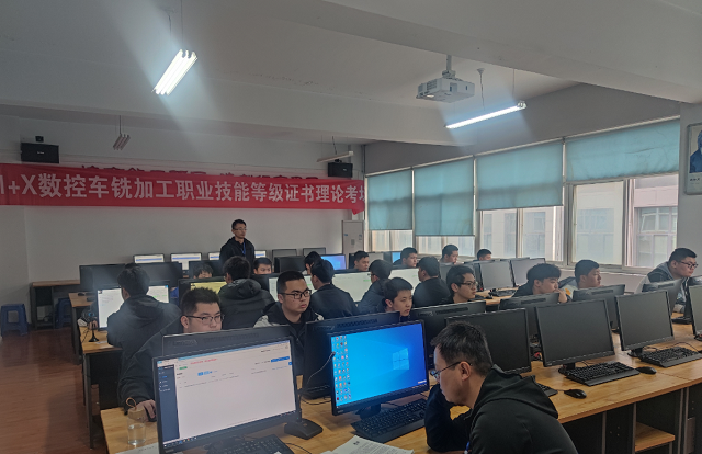 图为数控车铣考试现场