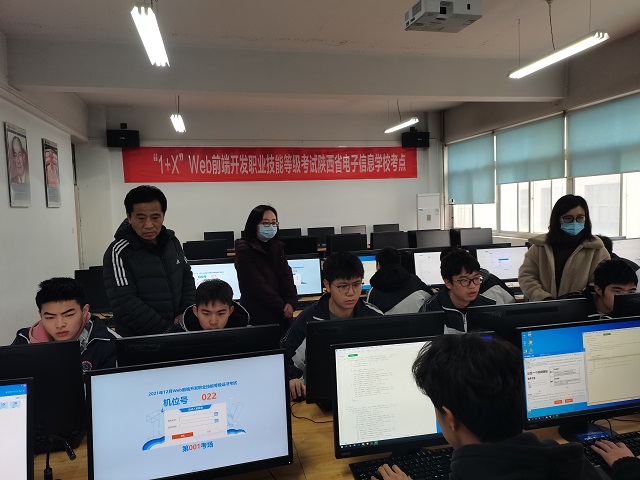 12月11日上午,我校举办“1+X”Web前端开发技能等级证书考试,来自计算机网络技术专业的17名学生参加。此次考试分为理论考试和实操考试两部分,对学生HTML5、CSS3、JavaScript等知识和技能掌握程度进行综合检验,时长4小时。