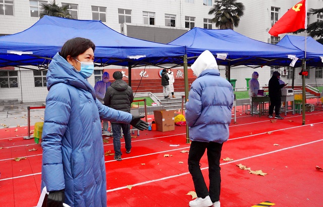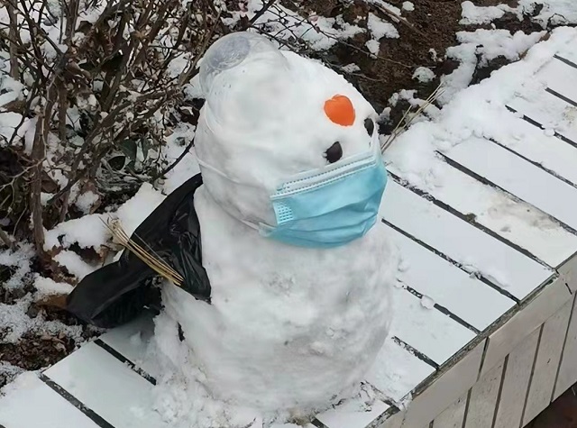 周六清晨,少数师生戴上口罩,隔开距离,在校园开阔的空地上打雪仗、堆雪人,嬉戏欢笑中,扫除因疫情引发的不安,抚平周末想家的情绪。25日中午,雪停了,太阳隐隐露出了脸,全体在校师生有序排队,开展第五次核酸检测。