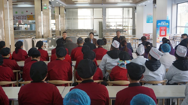 魏萍校长指出,全体餐厅工作人员在疫情防控封校期间,克服困难、坚守岗位,全力保障了三千多名师生的饮食供应和营养健康。寒假、春节期间,部分工作人员继续留守学校,为留校阿里师生提供服务。她代表学校对餐厅工作人员爱岗敬业的精神和为全体师生的辛勤付出表示感谢。魏萍强调,新学期学校餐厅要持续严把食品安全关,规范工作流程,专人专责管理,严格食材采购验收、索证索票、食品留样等制度;要努力开发餐饮新花样,进一步完善膳食结构,满足师生多样化需求,使餐饮质量和服务水平再上新台阶。