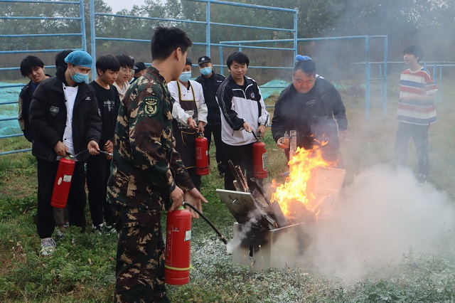 ——应急演练,防范于未然。宣传月期间,学校还举行了应急疏散演练和初期火情灭火实战演练。伴随着急促的哨声响起,同学们立即按照预定的紧急疏散路线有序撤离到指定安全地点,并完成师生人数清点,本次应急疏散演练共用时5分23秒。初期火情灭火实战演练中,楼管、教官、安保人员、班主任等在安保科老师详细讲解灭火器的分类、使用方法以及注意事项之后,依次使用灭火器,对初期火情进行扑救。