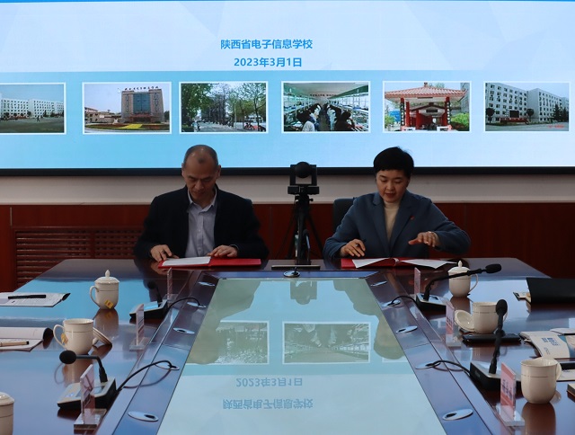 我校校长魏萍与西安航空职业技术学院副校长侯晓方签订中高职教育贯通人才培养合作协议,副校长李孝勇代表我校接受西安航空职业技术学院授牌。双方参会人员还围绕推动中高职衔接进行深入交流,并洽谈了相关具体事宜。
