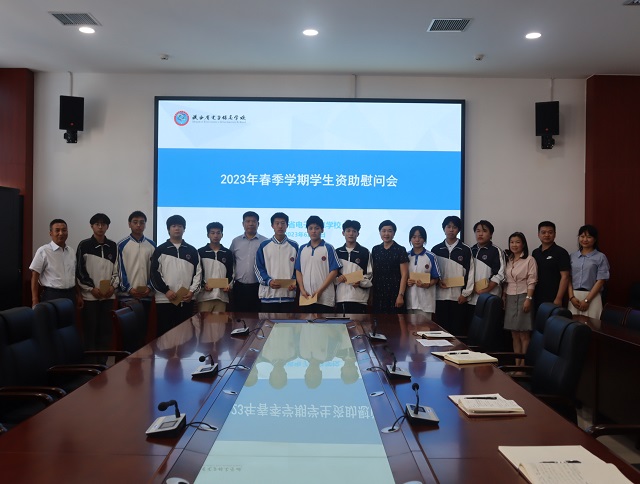 6月26日,我校在综合实训楼五楼会议室召开2023年春季学期学生资助慰问会,党委书记顾学福、校长魏萍出席并讲话,纪委书记卢仁虎主持。