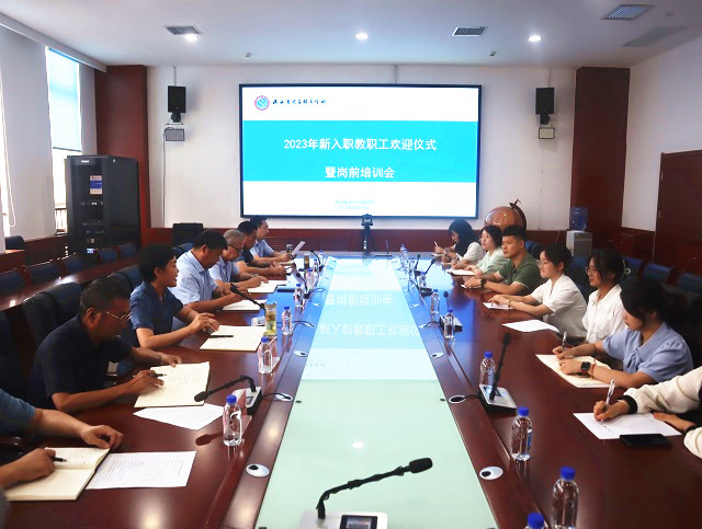 8月23日下午,我校新入职教职工培训会在综合实训楼五楼会议室举行,学校领导班子成员,党政办、教务科负责人出席,9名新任课教师和3名新班主任参加,党政办主任王胜武主持培训会。