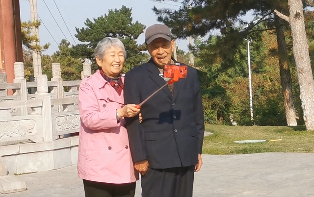 离退休老教师学习使用手机自拍